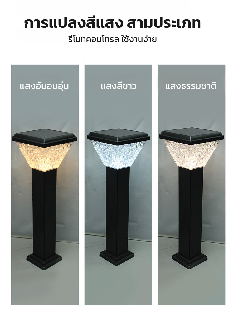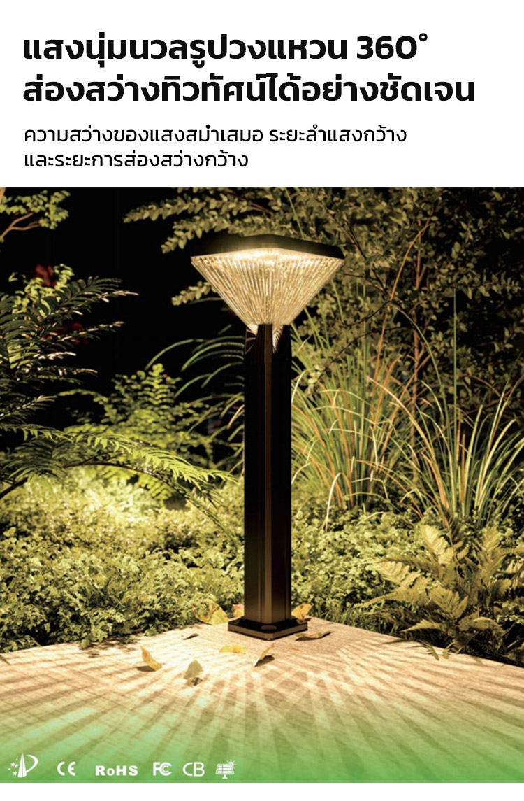 ✨ดีไซน์หรูเรืองแสงสวย ดุจดั่งอัญมณี - ทรงเพชรโดดเด่นเป็นสง่า เรืองแสงได้อย่างสวยงามในยามค่ำคืน เพิ่มความสวยงามระดับพรีเมียมให้สวนของคุณ