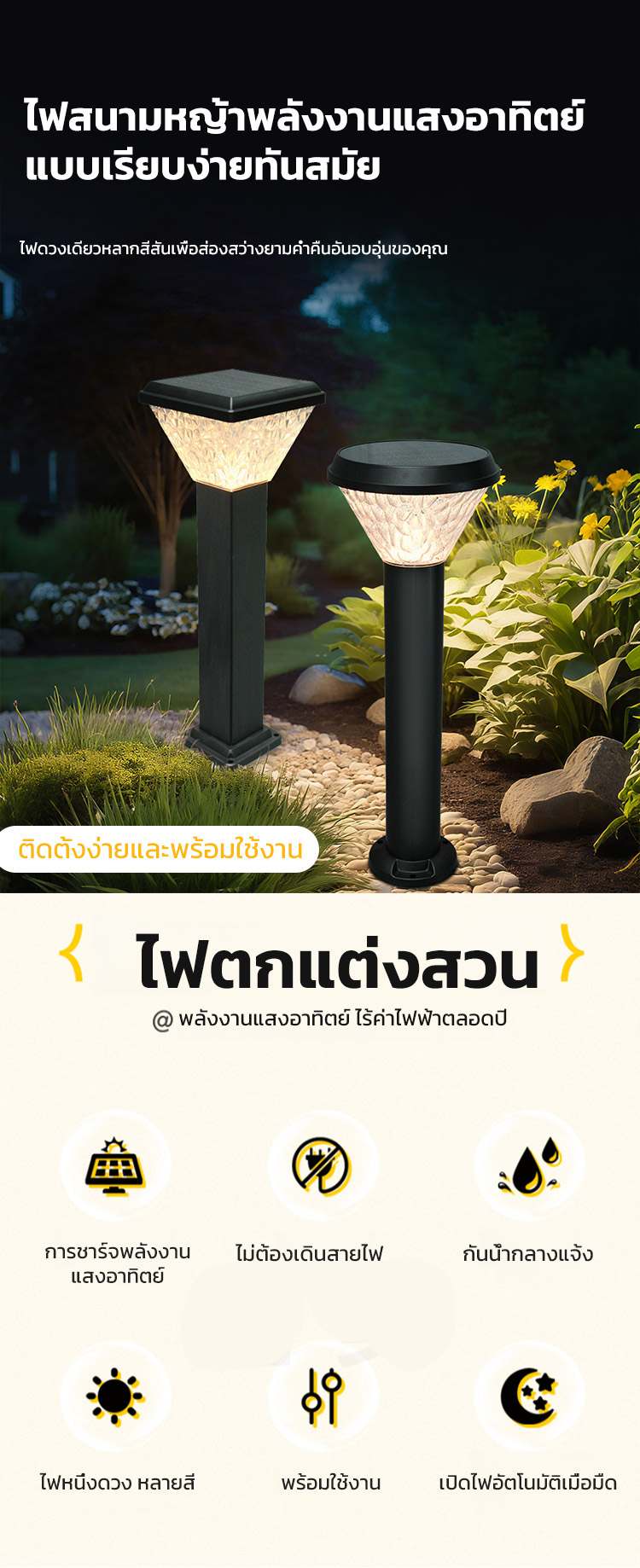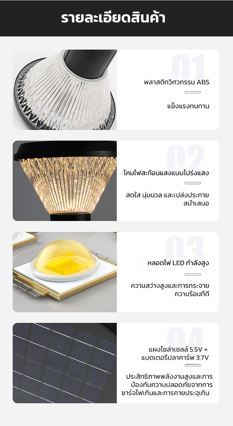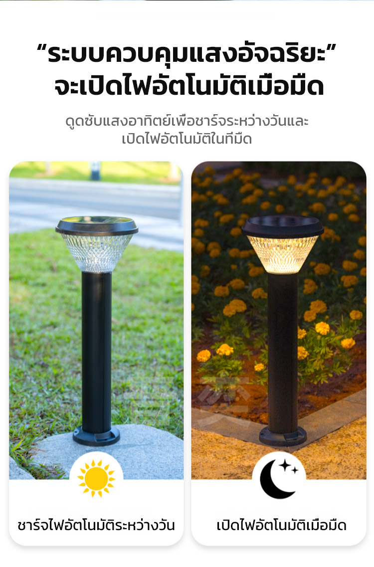 🌟ประหยัดพลังงานอัตโนมัติ ด้วยระบบพลังงานแสงอาทิตย์ - ติดตั้งง่าย ใช้พลังงานสะอาดจากแสงแดด เปิด-ปิดอัตโนมัติ ไม่ต้องเสียบค่าไฟ ช่วยลดภาระค่าใช้จ่าย