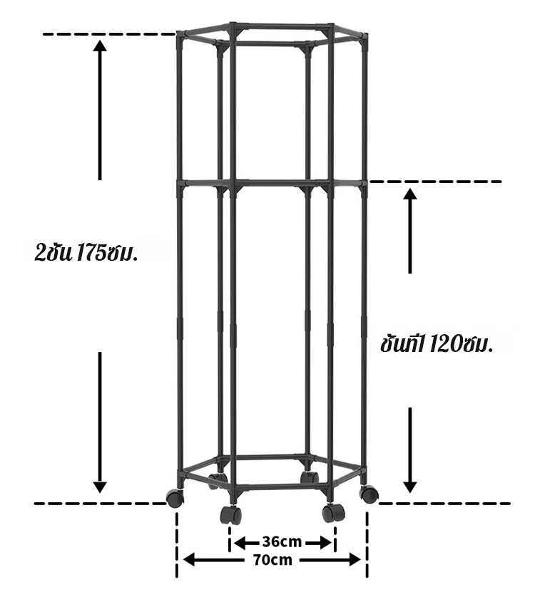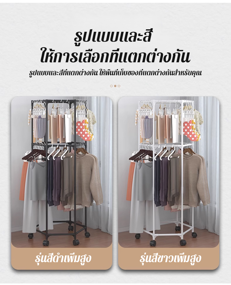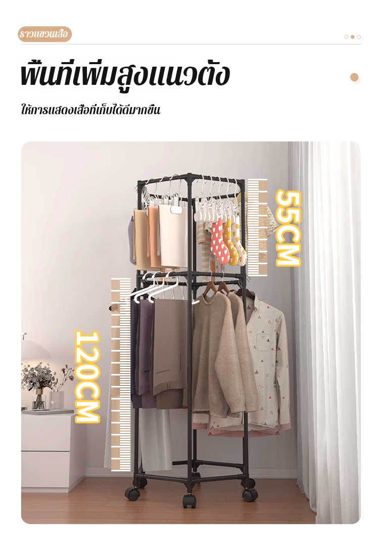 แขวนผ้าได้หกด้านใช้งานได้สองชั้น รุ่นนี้มีล้อด้วยสามารถหมุนได้ 360 องศา